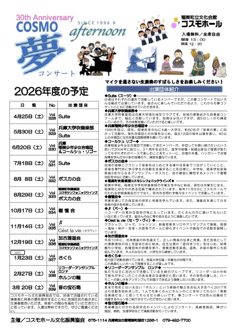 【お問合せ】稲美町立文化会館 コスモホール ☎︎ 079-492-7700