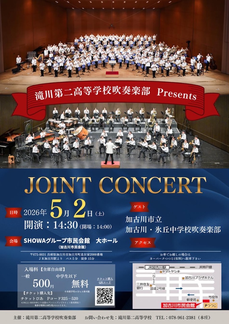 【内容】初めての加古川市でのジョイントコンサート!合同合奏も盛りだくさんでお届けいたします。