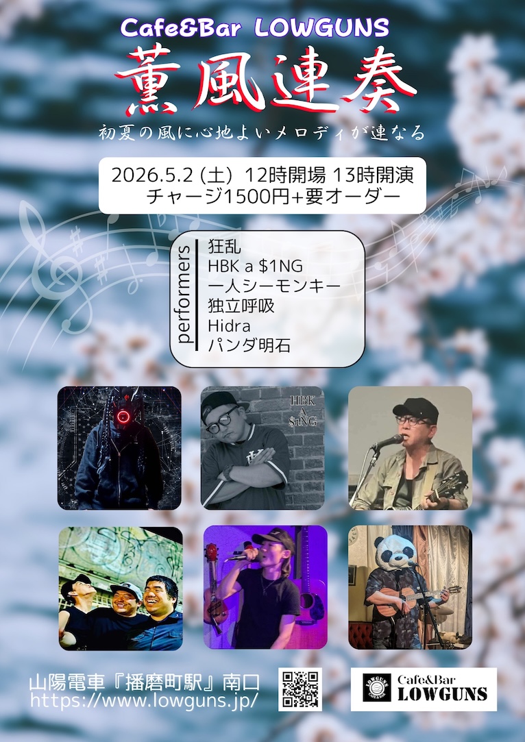 【場所】Cafe & Bar Lowguns 加古郡播磨町東本荘1-2-6 第2福田ビル 2階