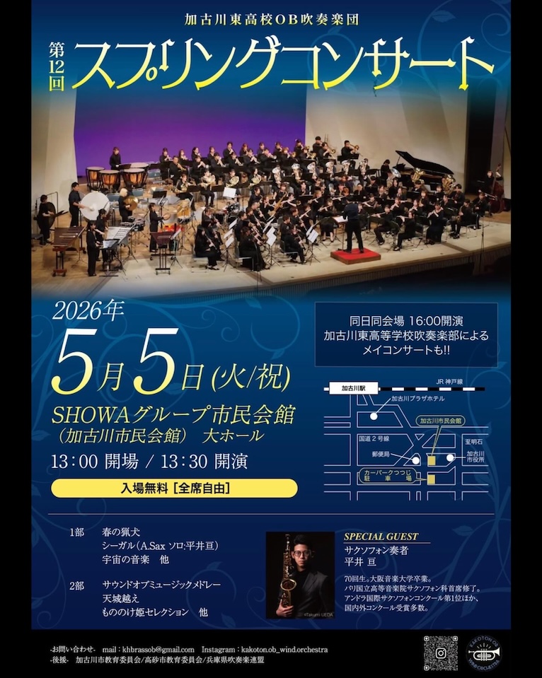 【お問合せ】加古川東高校OB吹奏楽団 ✉️ khbrassob@gmail.com 公式Instagram